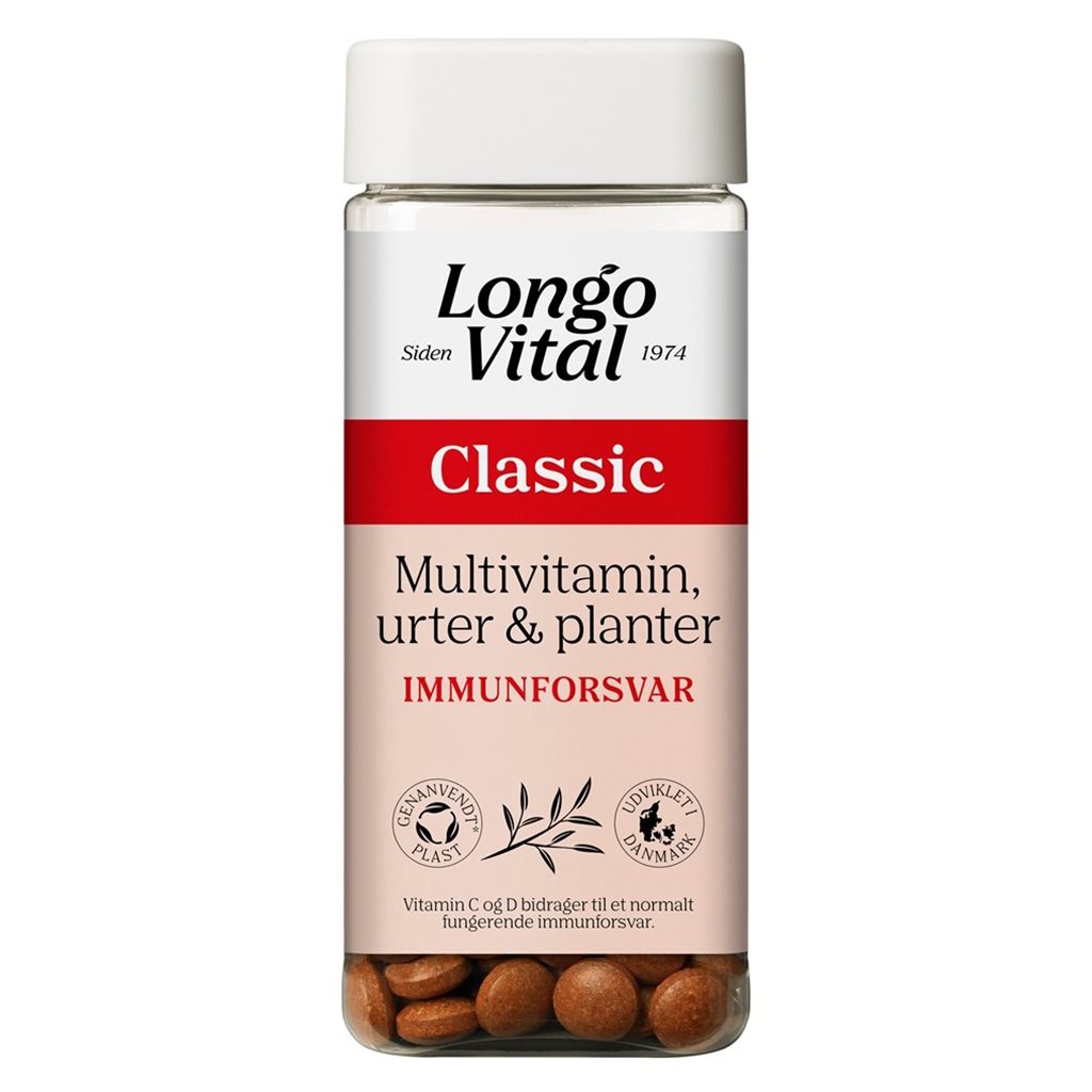 Longo Vital Classic er et kosttilskud med multivitamin, urter og planter til dit immunforsvar.