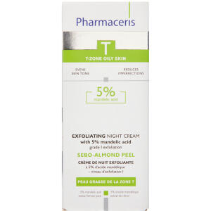 Pharmaceris T - Sebo-Almond Peel 5% er en natcreme med mandelsyre, designet til at eksfoliere og regulere talgproduktionen i fedtet og kombineret hud. Denne creme reducerer urenheder og forbedrer hudens tekstur.